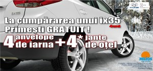 Pentru clientii care achizitioneza pana la sfarsitul anului un model Hyundai ix35 4WD, Helios Service ofera GRATUIT un set complet de cauciucuri de iarna (pentru varianta STYLE) sau un set complet de jante si cauciucuri de iarna (pentru variantele PREMIUM si LUXURY).