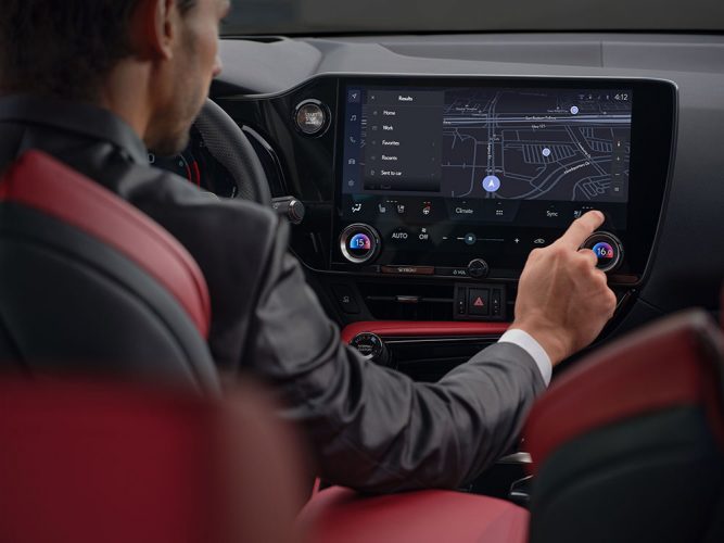 Pentru că suntem în 2021 și tehnologia a invadat mașinile (atât în interior cât și în exterior) Lexus avea ceva teren de recuperat la capitolul infotainment și a făcut această recuperare într-un mare stil! Noul sistem de infotainment ce debutează odată cu acest model se numește Lexus Link Pro HD și vine cu un ecran de 14 inch, Apple Car Play wireless și Android Auto. Lăsând la o parte faptul că ecranul arată infinit mai bine decât vechile sisteme Lexus, s-ar putea să nu fii nevoit să-l utilizezi prea des, având în vedere că mașina va răspunde la comenzile tale atunci când tu spui “Hei, Lexus!”, astfel că nu vei fi nevoit să-ți iei prea des ochii de la drum. Totuși, mulțumită tehnologiei mașina mai știe să facă și altceva, nu doar să-ți ia ochii – ceva mai important – se ocupă activ de siguranța ta și a celor din jurul tău. O dotare importantă este Steering Assist-ul evoluat – dacă mașina observă un obstacol în față, va vira automat astfel încât să nu iasă de pe banda de circulație, dar să evite pericolul iminent. Dacă până acum sistemele de siguranță puneau frână în locul nostru, acum au început să și vireze pentru a ne salva de propria noastră neatenție. Din punct de vedere al siguranței, Lexus vine și cu o premieră mondială – blind spot monitor-ul mașinii (cu care suntem cu toții învățați deja) acum poate bloca ușile dacă tu dai să ieși din mașină și nu observi că din spate vine un biciclist sau chiar o altă mașină. Sistemului nu te va lăsa să cobori pentru ca neatenția ta să nu provoace un accident grav.