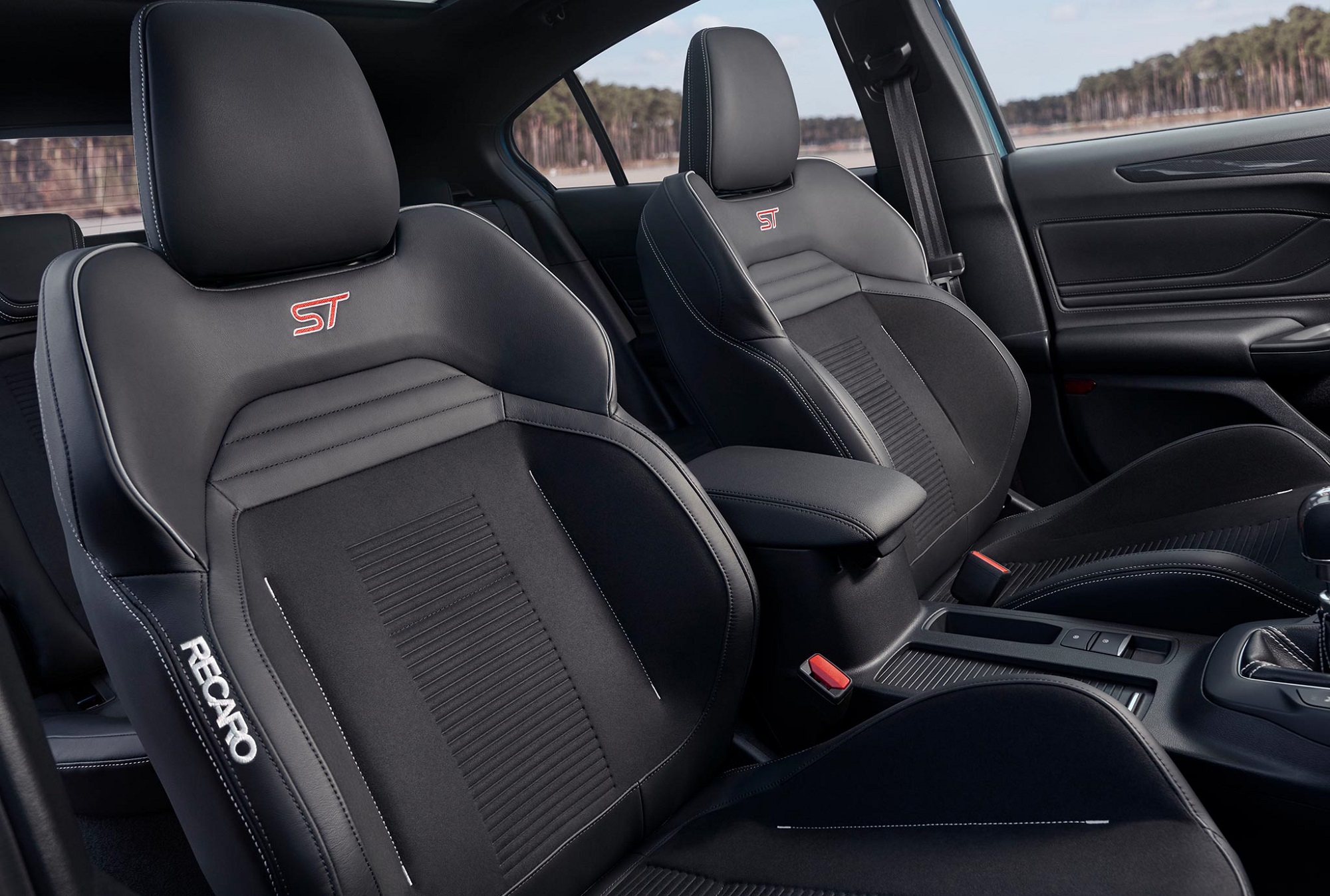 La interior, Ford Focus ST oferă spațiu generos pentru șofer și pasageri, cunoscutul sistem de infotaiment SYNC, dar și scaune sport Recaro plus numeroase inserții cu logo-ul „ST”. Design-ul exterior este și el ușor modificat, el prezentând o notă mai agresivă față de modelul „cuminte”. Aici iese în evidență eleronul poziționat într-un unghi mai agresiv, dar și evacuarea dublă.