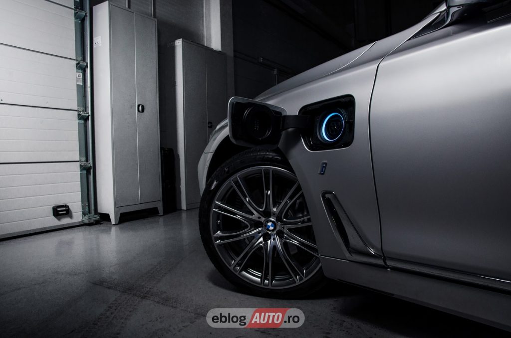 Bateria este de 7,4 kWh net/ 9,2 kWh brut. Producătorul a anunţat că bateria se încarcă în aproximativ 3 ore la 3,7 kWh şi în 4 ore la 2, 6 kWh. Noi am stat aproximativ 15 minute pentru a se încărca bateria, în urma căreia am obţinut o autonomie de 4 km, care au fost 4 km reali pentru că am reuşit să ajungem până la Obor pe full electric. Autonomia declarată de cei de la BMW este de 40 de km, reali fiind aproximativ 30 de km.