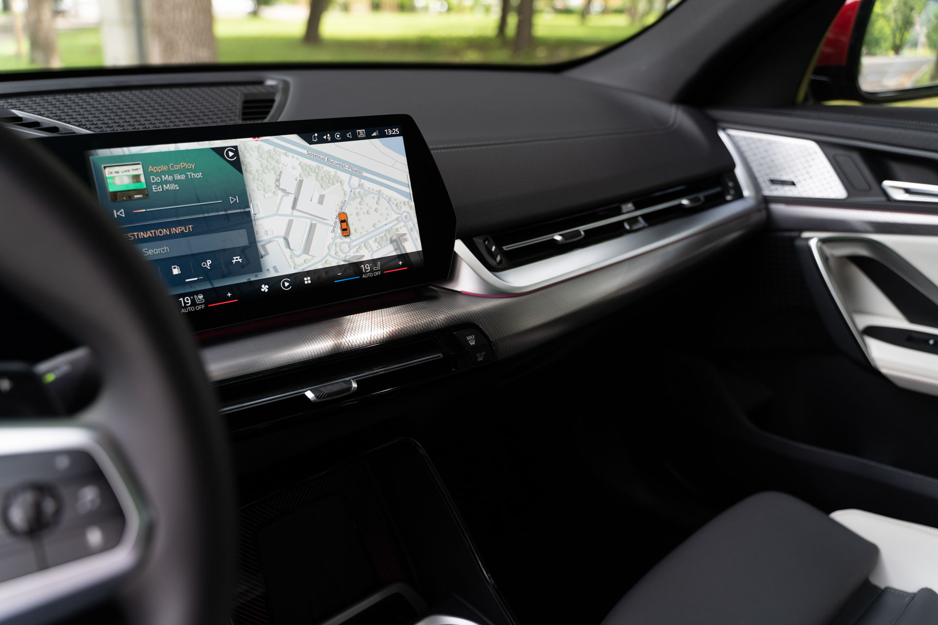 Partea mea preferată de tehnologie este sistemul de navigație. Deși suntem în era în care în principiu avem nevoie de conectivitate Apple CarPlay sau Android Auto pentru a ne putea folosi de Waze pentru deplasări, sistemul de navigație al noului X2 funcționează atât de bine și vine cu o caracteristică atât de folositoare, încât, pentru deplasările urbane în zone necunoscute, câștigă detașat față de Waze, în opinia mea. În momentul în care ajungi într-o intersecție îți apare pe tabletă un chenar în care rulează imaginile surprinse de camera video din fața mașinii, la care se adaugă animații în formă de săgeți ajutătoare pentru a fi sigur că nu ratezi strada pe care trebuie să virezi.
