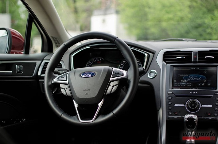 Interior: Mi-a placut atat de mult interiorul lui Ford Mondeo incat nu imi mai venea sa ies din masina. Nu as putea sa spun de ce mi-a placut atat de mult; chiar si acum cand scriu aceste randuri, stau si ma uit la poze cu interiorul masinii si nu inteleg de ce mi-a placut atat de mult habitaclul. Scaunele erau confortabile iar pozitia la condus relaxata, exact cum ar trebui sa fie intr-o masina din acest segment. Liniile interiorului se imbinau foarte frumos astfel ca, fara sa iti dai seama, deveneai foarte comod. Butoanele de pe consola centrala iti ofereau un simt placut la atingere, iar bancheta spate abia astepta sa primeasca pasageri. Totusi, nu interiorul este cea mai reusita parte a aceste masini, din punctul meu de vedere.