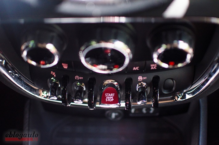 Modelul testat de mine a fost echipat cu sistem inteligent de pornire (Start/Stop), oglinzi interioare și exterioare cu funcție automată de anti-orbire (funcție preluată de la BMW), PDC sau Park Distance Control (față și lateral) + Park Assistant – funcții care te ajută să parchezi, dar nu este totul automat, șoferul trebuie să accelereze mașina. Mașina avea în dotare și pachetul Chili, din care as vrea să menționez: LED fog lights, LED headlights (și aceasta preluată de la BMW) un sistem foarte util care ajută șoferul să aibă o vizibilitate mai bună noaptea și care, în aceelași timp, atunci când detectează o altă mașină venind din față, împiedică orbirea șoferului de pe contrasens, dar nu diminuează vizibilitatea șoferului de la volanul lui MINI.