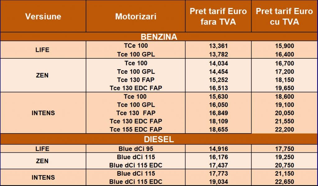 Oferta disponibilă în România include o gamă largă de motoare reproiectate, în mare măsură, pe benzină și diesel. Împreună cu o cutie de viteze manuală cu 5 sau 6 trepte sau cu o cutie de viteze automată cu dublu ambreiaj cu 7 trepte, aceste motoare propun o paletă largă de putere: de la 100 la 155 CP pentru benzină și de la 95 la 115 CP pentru diesel. De asemenea, clienții pot opta pentru versiunea GPL.