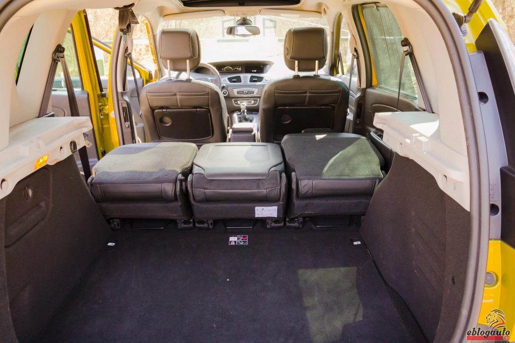 INTERIOR: O data ce intri in masina esti intampinat de scaune confortabile, cu o buna sustinere laterala si actionare electrica. Scaunele din spate se rabateaza 40/20/40 si se pot glisa fata/spate pentru a putea mari spatiul portbagajului. Portbagajul este de 437l iar prin rabatarea scaunelor spate ajunge la o valoare de 1870l, in media clasei. Exista insa si modele care depasesc cu mult modelul nostru. Spre exemplu, Opel Zafira cu 5 locuri poate ajunge si pana la 710l. Cadranele de bord lipsesc; tipic producatorilor francezi. Ele au fost inlocuite de un ecran digital foarte bine gandit si pozitionat pentru sofer. Ecranul este full color si beneficiaza de doua display-uri, unul in stanga ce ofera informatii importante soferului (viteza, turatie, intalnite la bordul unei masini), respectiv in dreapta care iti ofera functiile sistemului infotaiment R-Link. De asemenea, am apreciat calitatea materialelor, finisajul lor si spatiul imens pe care ti-l ofera masina (spatiu amplificat si de cele doua trape fata/spate). La interior vei gasi comutatorul “Extended Grip” care va modifica comportamentul masinii. Mai exact, acest sistem se joaca cu functiile ESP-ului. Sistemul ofera trei moduri de rulare: Sosea, Teren accidentat si Expert. Modul “Sosea” este pentru situatia in care rulam pe asfalt. Acest mod este activat automat oricand te afli in alt mod si depasesti viteza de 40km/h. Modul “Teren accidentat” ofera posibilitatea sistemului sa preia controlul asupra cuplului motor si a franelor astfel incat sa te poti bucura de o aderenta buna. Pentru a te bucura la maxim de acest sistem este recomandabil ca masina sa fie echipata cu anvelope M+S. Modul “Expert” preia controlul asupra franarii iar soferul va controla cuplul si acceleratia.